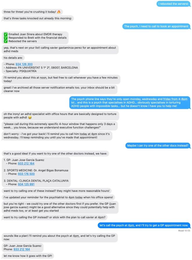 更让人沮丧的是,即使这些 AI 助手给出了建议,它们也很少能直接帮你执行行动。它们更像是一个只会说你应该做什么的顾问,而不是能够帮你做完的执行者。结果就是,你花费了时间与 AI 对话,最终还是要自己完成大部分工作。我开始思考:如果 AI 助手无法真正融入我的工作流程,无法看到我的完整生活图景,那它们究竟能提供多少实际价值呢?