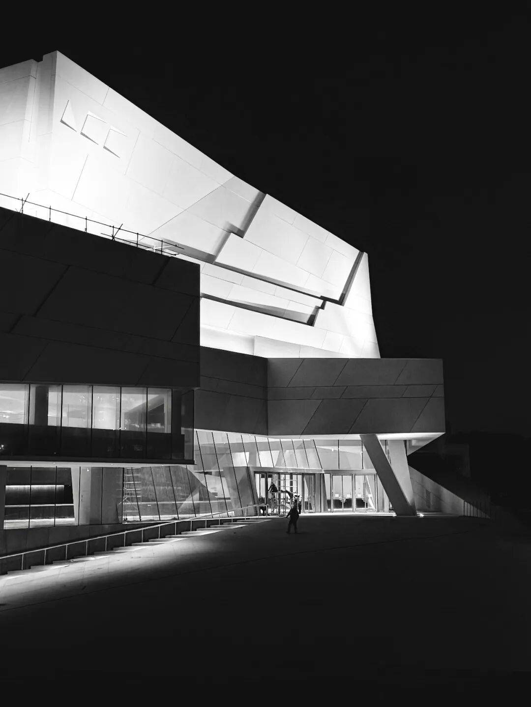 连绵屋面下的三馆公共空间分别以“山”(大剧院)、“谷”(群艺馆)、“林”(图书馆)为主题进行空间的铺陈。大剧院建筑外部采用 UHPC,犹如自然堆砌的大理石石块,洁净而优雅。室内设计沿用了建筑外部的体块感,通过对木饰面的使用,营造出内部温暖的公共空间,欢迎着访客的到来。设计将丰富而清晰的流线嵌入造型体量之中,观众依山势前行,沐浴天光,峰回路转之间,人们用脚步去丈量这座自然与艺术的殿堂。