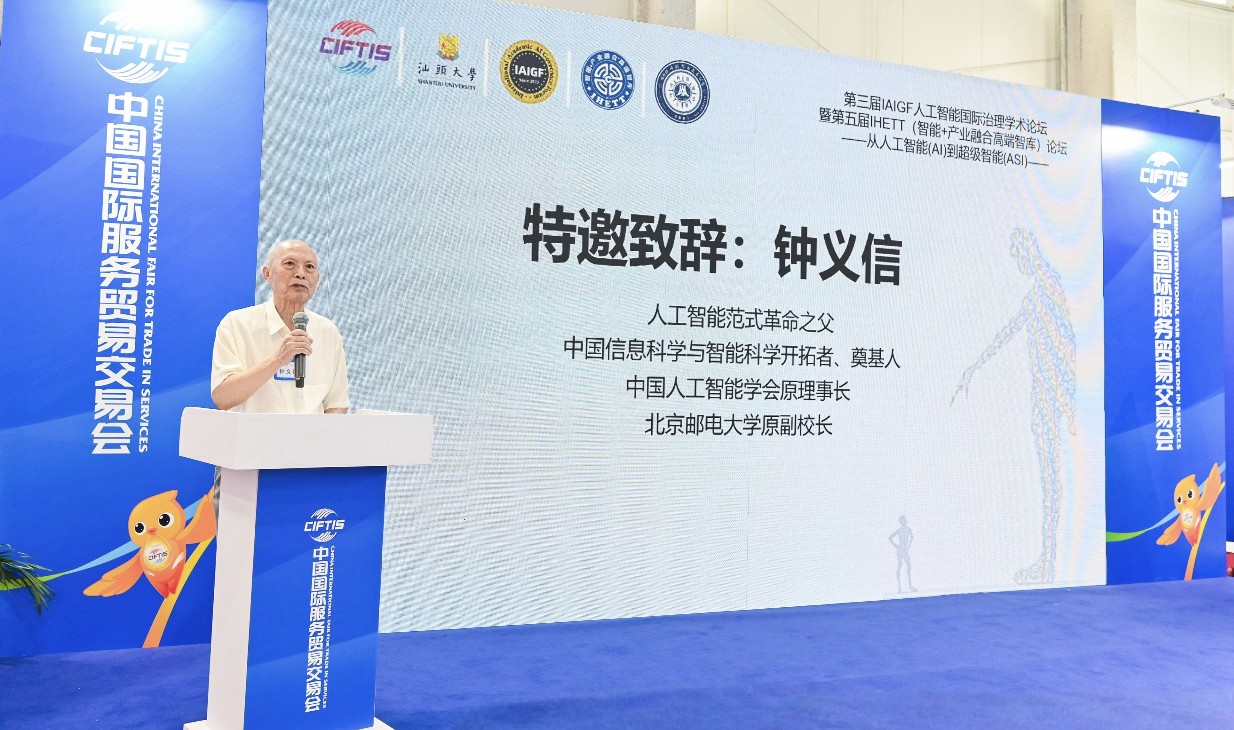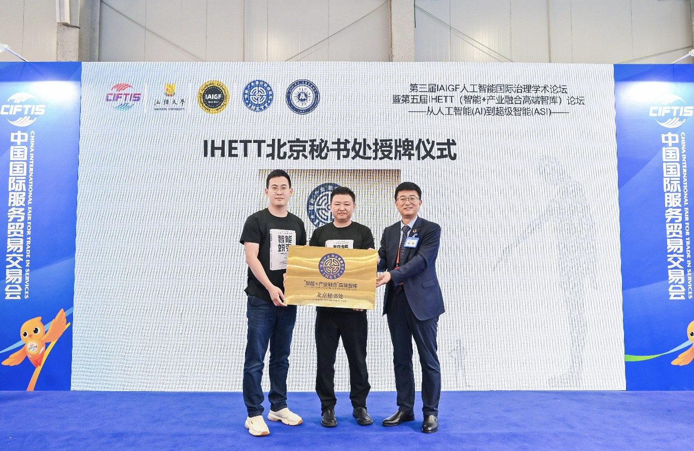2025年9月14日,2025 中国国际服务贸易交易会系列活动第三届人工智能国际治理学术论坛(lAIGF)暨第五届IHETT(智能+产业融合高端智库)论坛在中国服贸会北京首钢园主会场开幕。