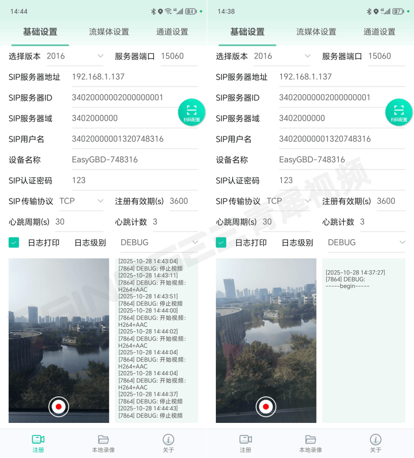 移动网络的不稳定性是城市管理户外场景的核心技术挑战。EasyGBD安卓端内置自研高性能SIP协议栈,针对NAT穿透、网络波动、弱网传输等场景进行专项优化,支持UDP/TCP传输模式自适应切换,可根据网络带宽动态调整传输策略。其具备完善的心跳检测与离线重连机制,当设备与平台因网络切换、信号中断断开连接时,会自动触发重连逻辑,重连过程透明化,确保关键视频数据不丢失、音视频流持续稳定。